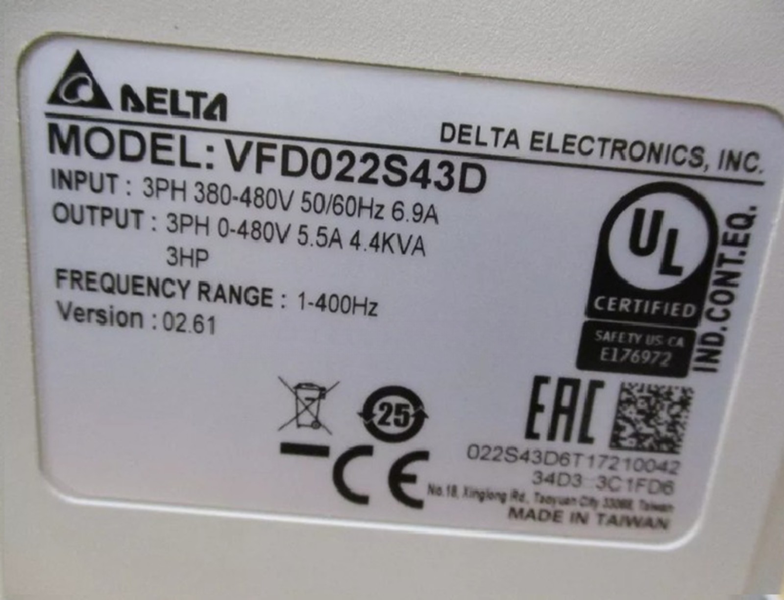 | Model | DELTA VFD022S43D |