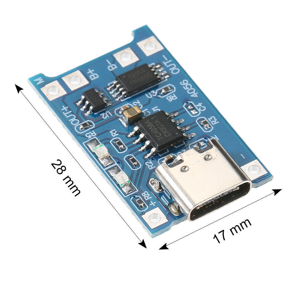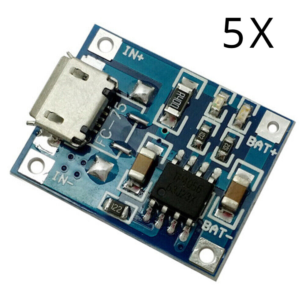 - 5x TP4056 5V 1A Lithium Battery Charging Protect Boards with either Micro USB or Type-C inputs.