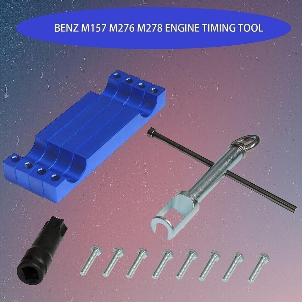 Engine Timing Tool for Mercedes Benz M157 M276 M278 with T100 Injector PullerSimple and Practical Tools: Engine timing tool kit includes camshaft timing tool and injector remover, camshaft alignment timing tool is compatible with BENZ M157 M276 M278 engine. In addition, it comes with an injector remover compatible with BENZ M133 M152 M157 M270 M274 M276 M278.