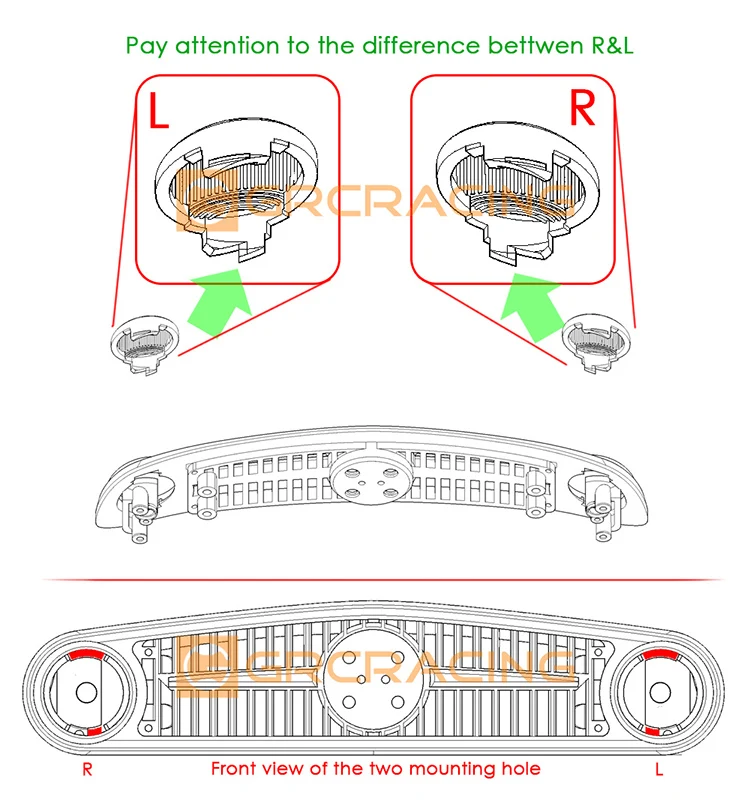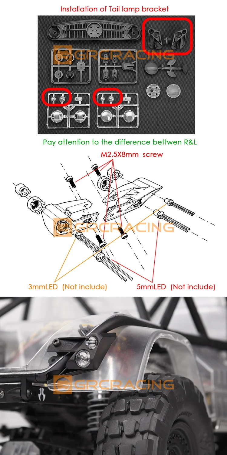 Installation instructions for front turn signal lights: (Installation holes need to be cut on the car shell.