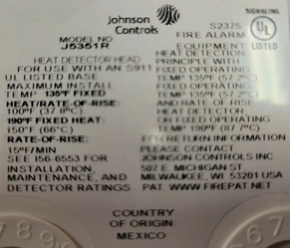 Johnson Controls J5351R Intelligent/Addressable Heat detector