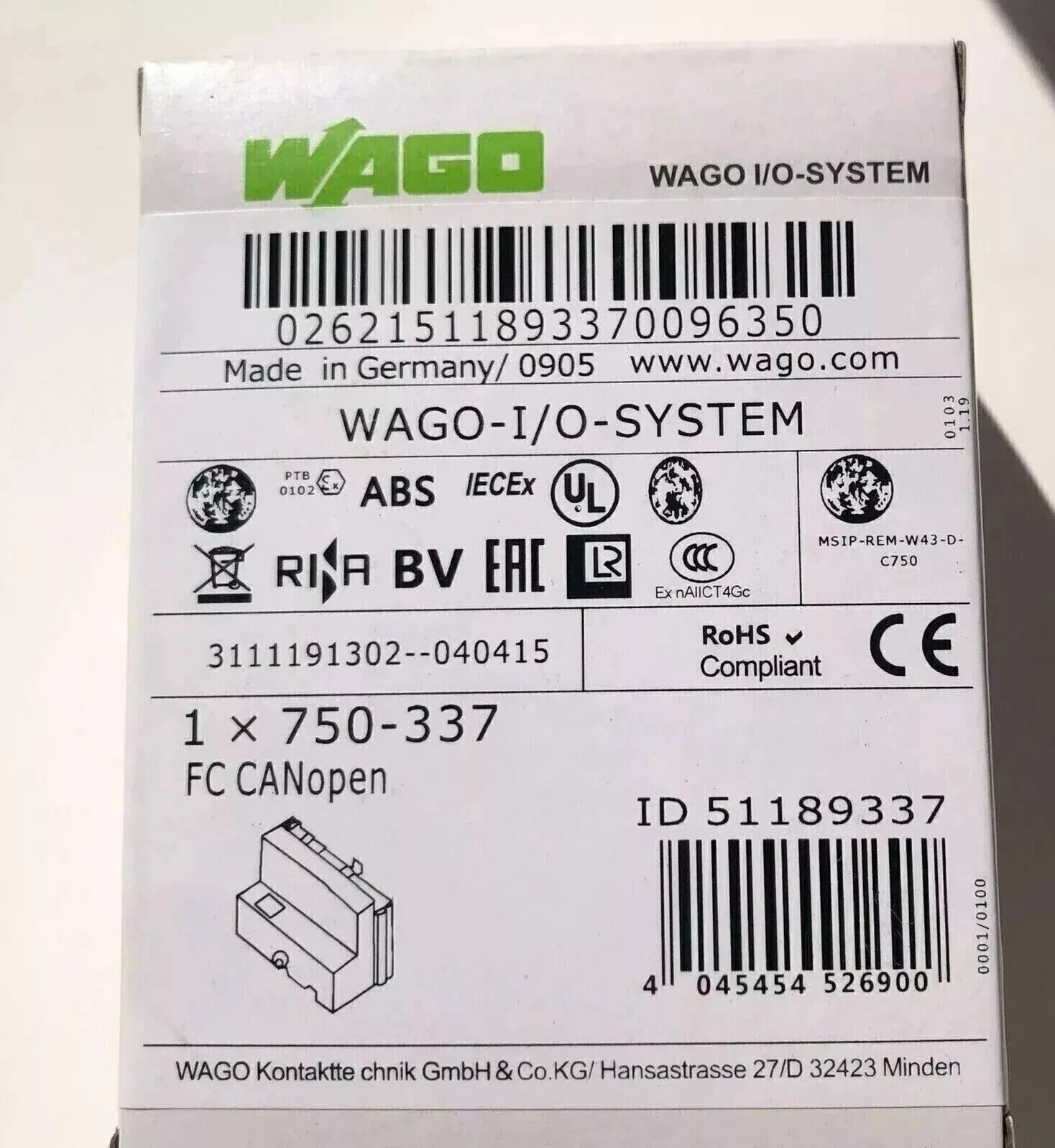 New WAGO 750-337 Buscoupler DeviceNet Module 750 337