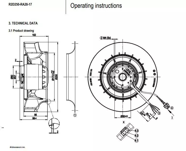 R2D250-RA28-17 Centrifugal Fan AC 400V 2700RPM DC Speed Governor Fan