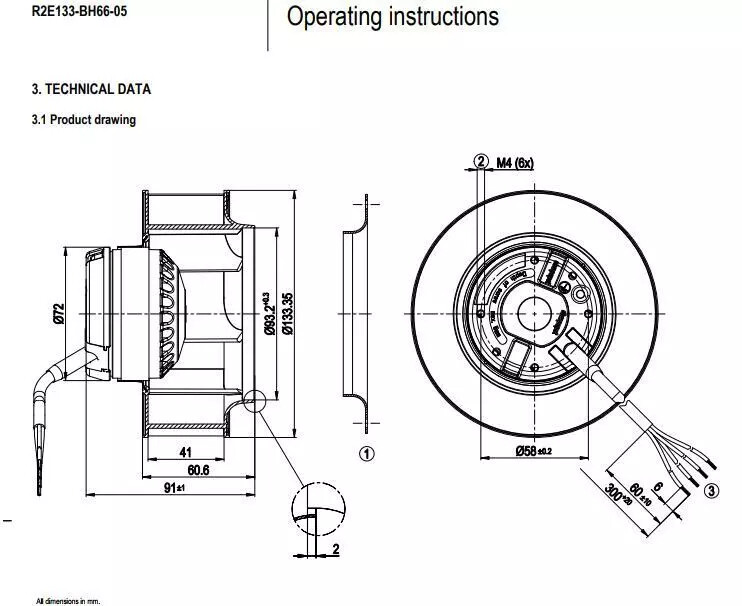 R2E133-BH66-05 Centrifugal Fan 230VAC 24/27W 133MM Cabinet Cooling Fan