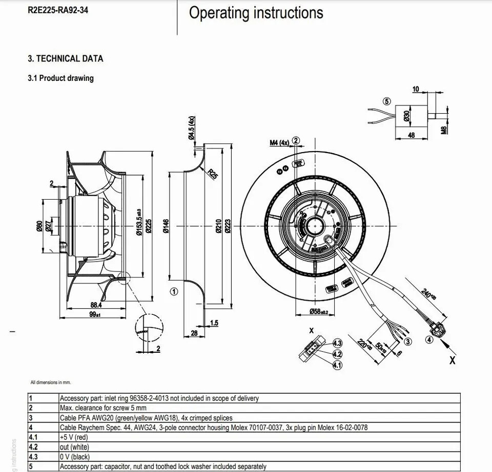 R2E225-RA92-34 Centrifugal Fan 230V 210W 225*99MM Inverter Cooling Fan