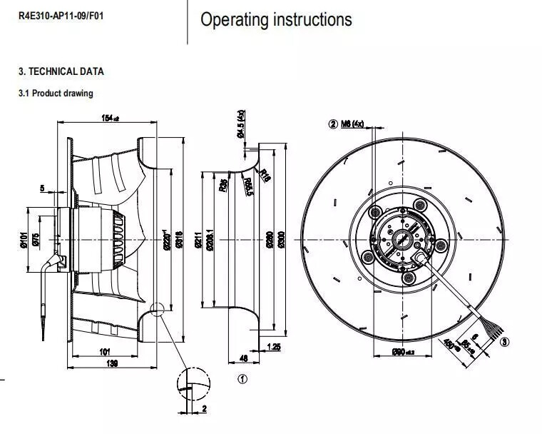 R4E310-AP11-09/F01 Centrifugal Fan 310mm For FFU Purification Equipment