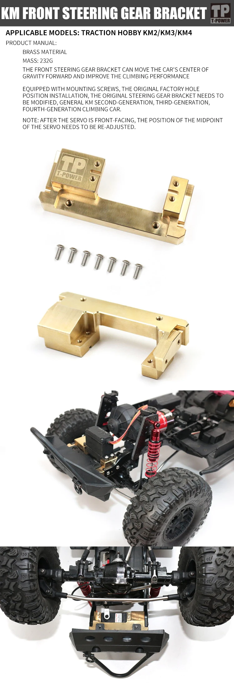Raytheon TRACTION HOBBY 1/8 KM2 KM3 KM4 Front Servo Support Bracket Base Brass